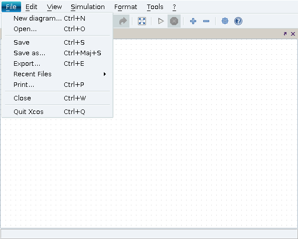 Clicking on the New menu item loads an empty diagram in the active editor xcos window. If the previous content of the window is not saved, it will be lost. With this menu, you can open a new diagram or a new palette.